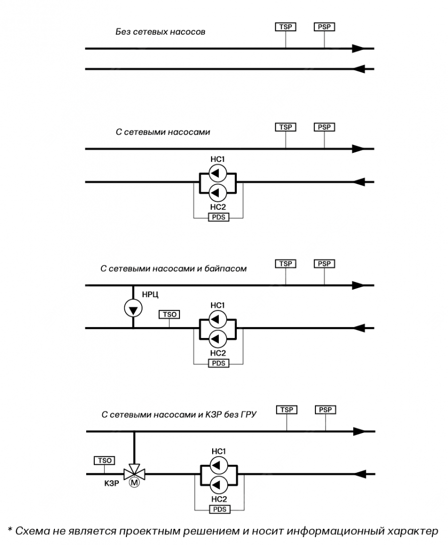 • регулирование сетевыми насосами;